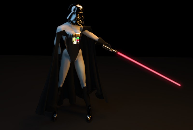 A rigging test using a idea I had for a female Darth Vader concept. Tests were for proper shoulder, back and hip deformation and a cloth sim. Fairly successful, so I'm calling it done.