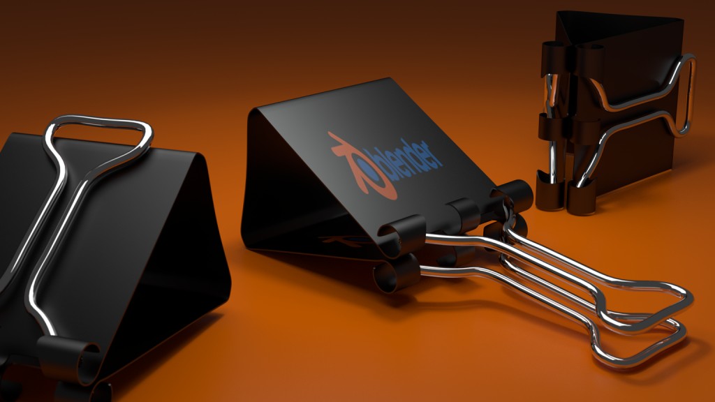 binder clip modeled in blender version 2.63 . array, mirror and bezier curve used , rendered i cycles.