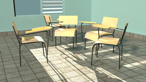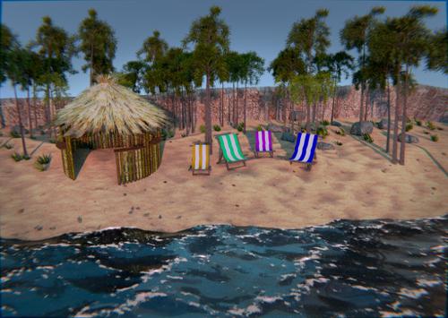 Beach with Tiki Hut, Palm Trees and Beach chairs