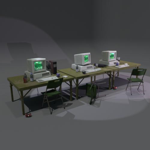 Computers, desk and chairs
