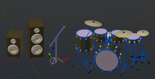 Drag & Drop Mid/Low Poly Collection of Drums, Speakers, Microphone.