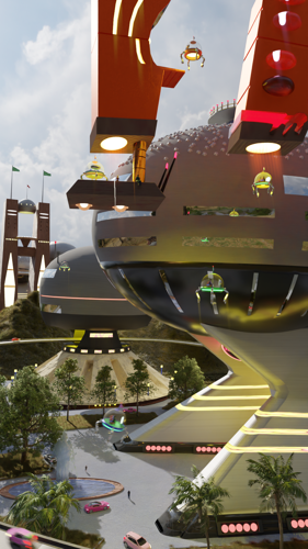 Retrofuturistic City Animation Scene